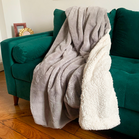 Plaid Polaire Imitation toucher "Lapin" - Gris clair